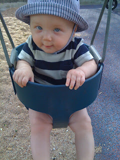 4:40pm: Nicholas and I head out for a walk around the neighborhood. It's close to 90 and humid, but even this is a marked improvement from just a few weeks ago when an afternoon walk would have been an impossibility. We stop at the park for 10 minutes to play on the swings-- his new favorite activity-- and then we continue on our way.